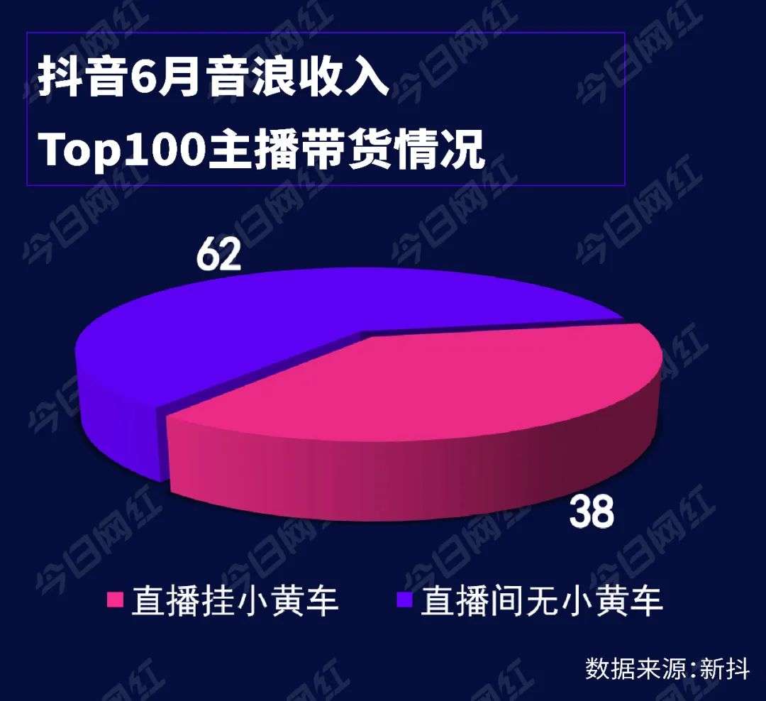 于是,我们看到,6月抖音娱乐直播收入前100的主播里,38%的人挂起了小黄车;衣哥3个月卖了1.7亿、高火火首秀破6000万、惠子首秀破400万……