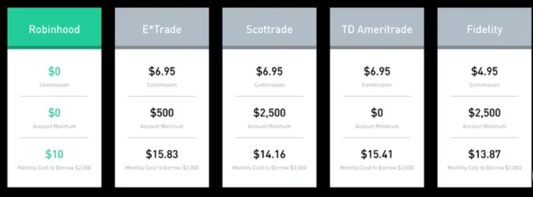 罗宾汉与其他股票软件佣金比较,图片来源:Robinhood Blog