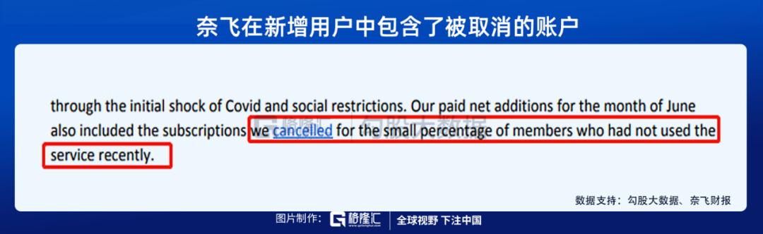 有个细节值得注意,奈飞这个月的新增用户数中可能存在一些水分。公司在财报里说,在这个月的新增用户数中包含了一些已经被取消的订阅会员,这些会员最近都没有使用公司的流媒体服务。