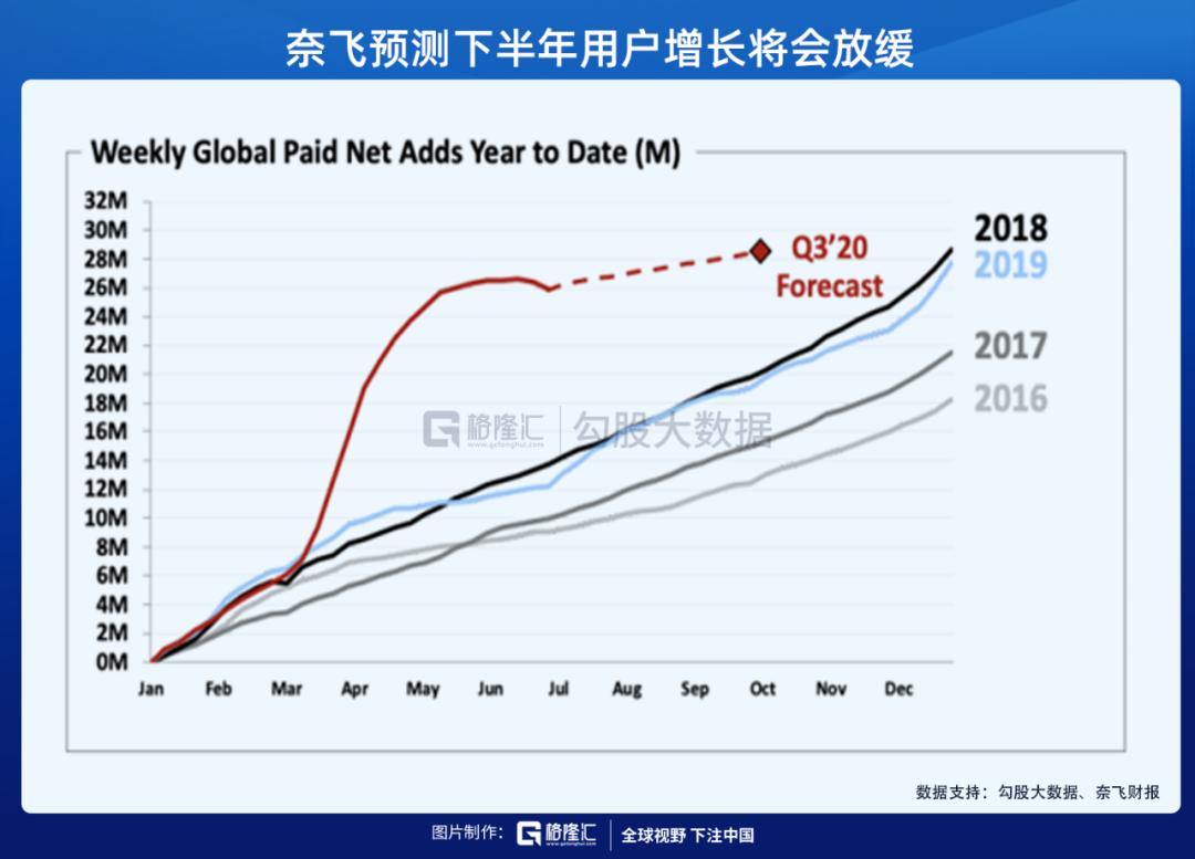 所以这个季度,奈飞直接用曲线图来告诉大家,前两个季度用户爆炸性增长只是提前,下半年真的要放缓了。