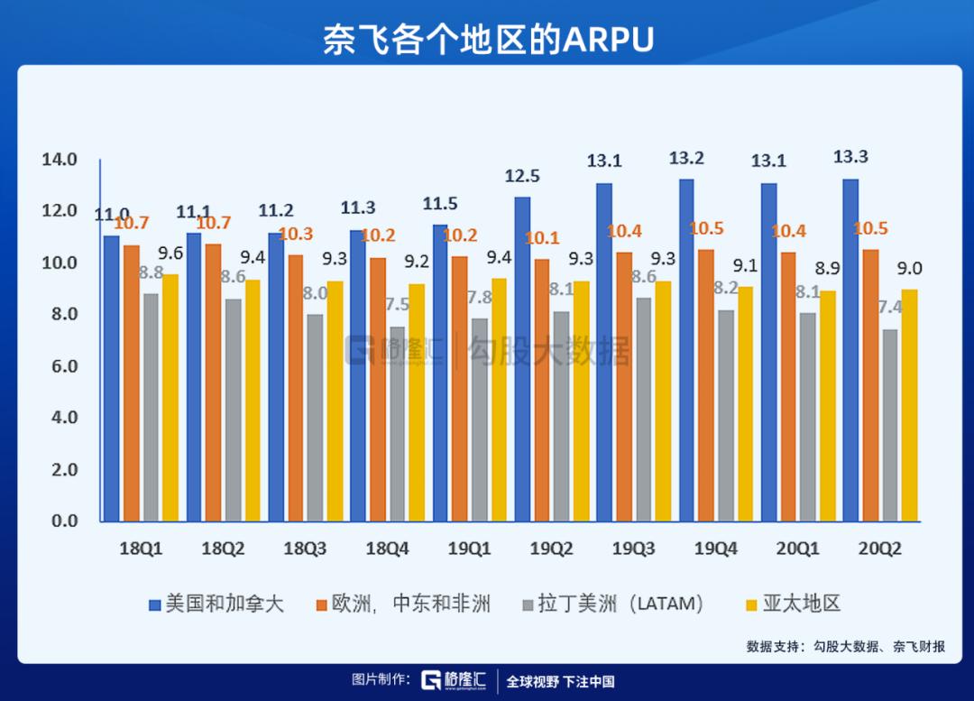 由于目前奈飞在流媒体行业龙头位置还算稳固,所以用户对价格并不敏感,提价并没有导致付费用户的流失,所以提价的影响直接传导在ARPU上。