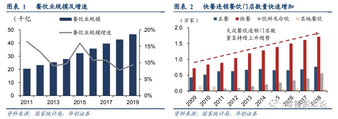 餐饮变革下的十年产业机遇:长尾品类连锁化&食材工业化。餐饮供应链近年加速变革,下游门店连锁化带来“长尾品类连锁化”及“食材半成品需求增加”。