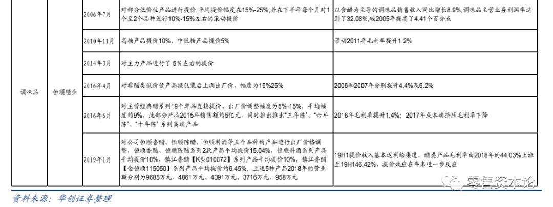 行至19 年,传统品类龙头全面运用强定价权(包括肉制品、传统休闲食品、食醋、料酒等品类龙头),有效驱动经营改善。