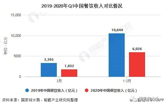 根据国家统计局发布的2020年一季度社会经济发展状况显示,2020年1-3月,全国餐饮收入6026亿元,同比大幅下跌44.3%。