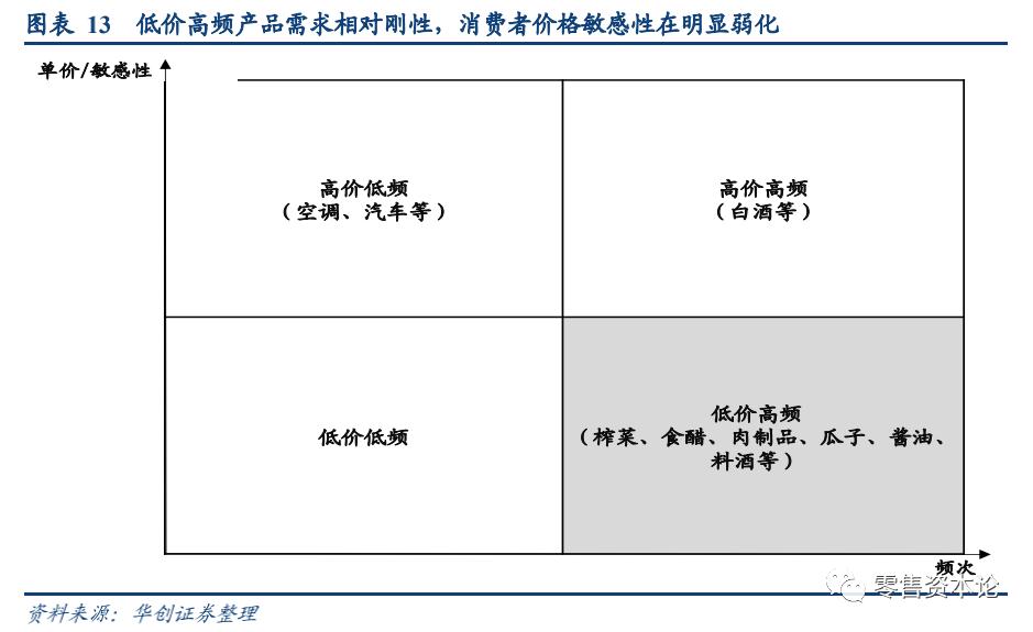 第一维度:低价高频属性品类,价格敏感性更弱。