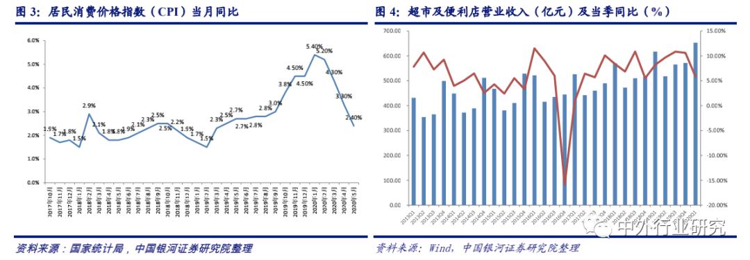 必选消费:5 月 CPI 同比增速降至 2.4%,2019 年全国超市百强实现销售规模近万亿元