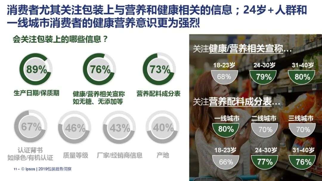 消费者关注包装信息洞察,图源《益普索Ipsos:2019中国食品饮料行业包装趋势洞察报告》