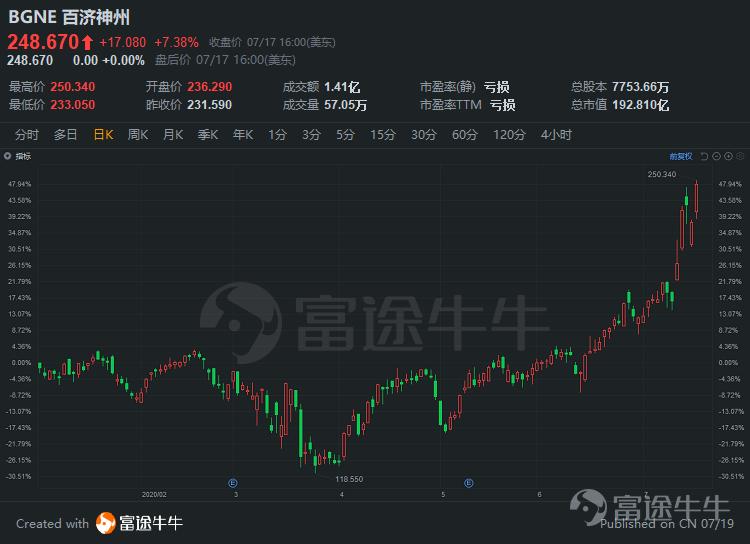 百济神州(BGNE.US)多年自主研发药物进入收获阶段,BTK抑制剂和PD-1单抗陆续在国内外上市,市场空间广阔,同时与安进(AMGN.US)首个商业化合作产品落地,后续多款产品有望陆续上市,拉动公司股票价格上涨。