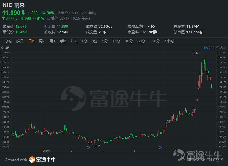 蔚来周四收跌4%,报12.94美元,盘后仍跌1%,已连续两日回调。7月以来,蔚来股价累涨67%。据悉,蔚来全新纯电轿跑SUV EC6将于下周五(7月24日)于成都车展上市,今年9月计划交付使用。