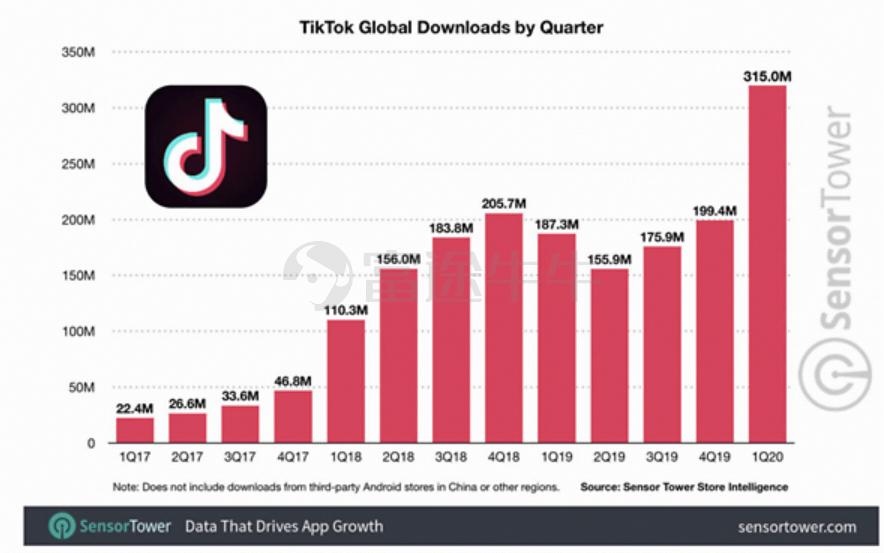 仅上线一年,TikTok在全球有了8亿次的下载量,而到2020年一季度,TikTok下载量达到3.15亿次,力压Youtube和Instagram,全球无数的青少年沉迷于此。或许,TikTok是中国近几百年来,向外输出成瘾性最强的产品。