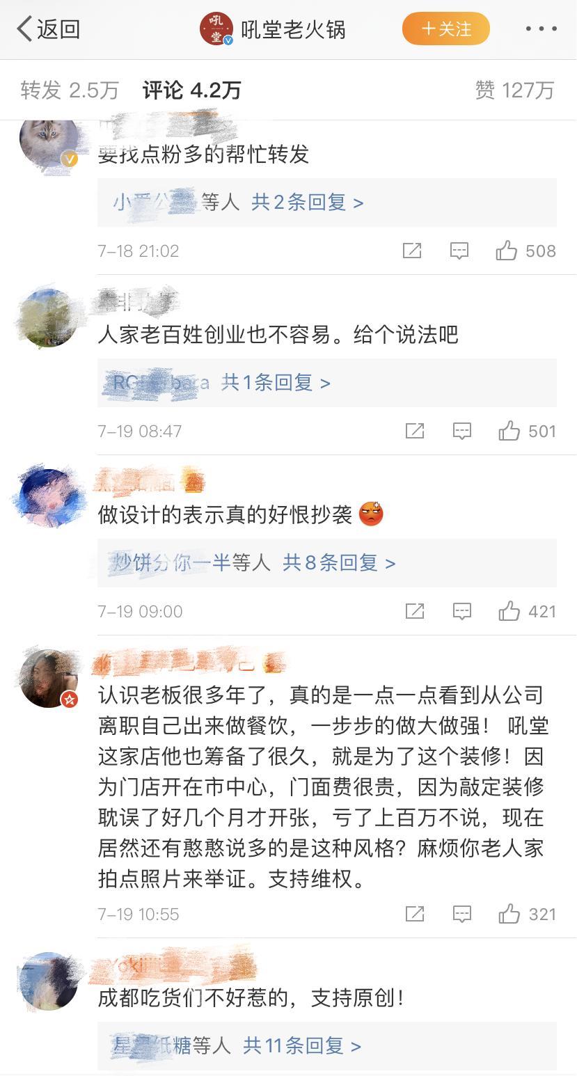 相反,在此事件中,不少人种草了这家成都的火锅店“吼堂”,纷纷表示要去打卡。这可能是这家被抄袭的火锅店,无奈的“因祸得福”吧。