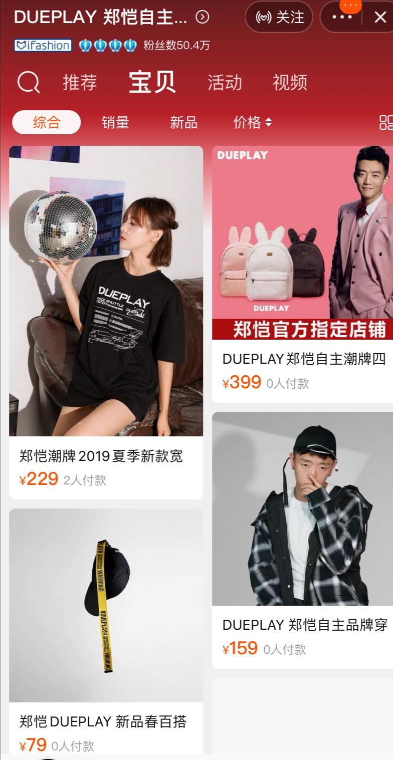 另外,郑恺还创建了个服装潮牌叫DUEPLAY,也开设了淘宝店和天猫店。淘宝店已经是一家五年老店,粉丝数超过50万,但是销量却惨淡,卖得最多的是一件夏季T恤,只卖出两件,大多月销是0件,整个店一个月只卖出去16单;天猫店开业三年,粉丝数11万,销售情同样不佳。