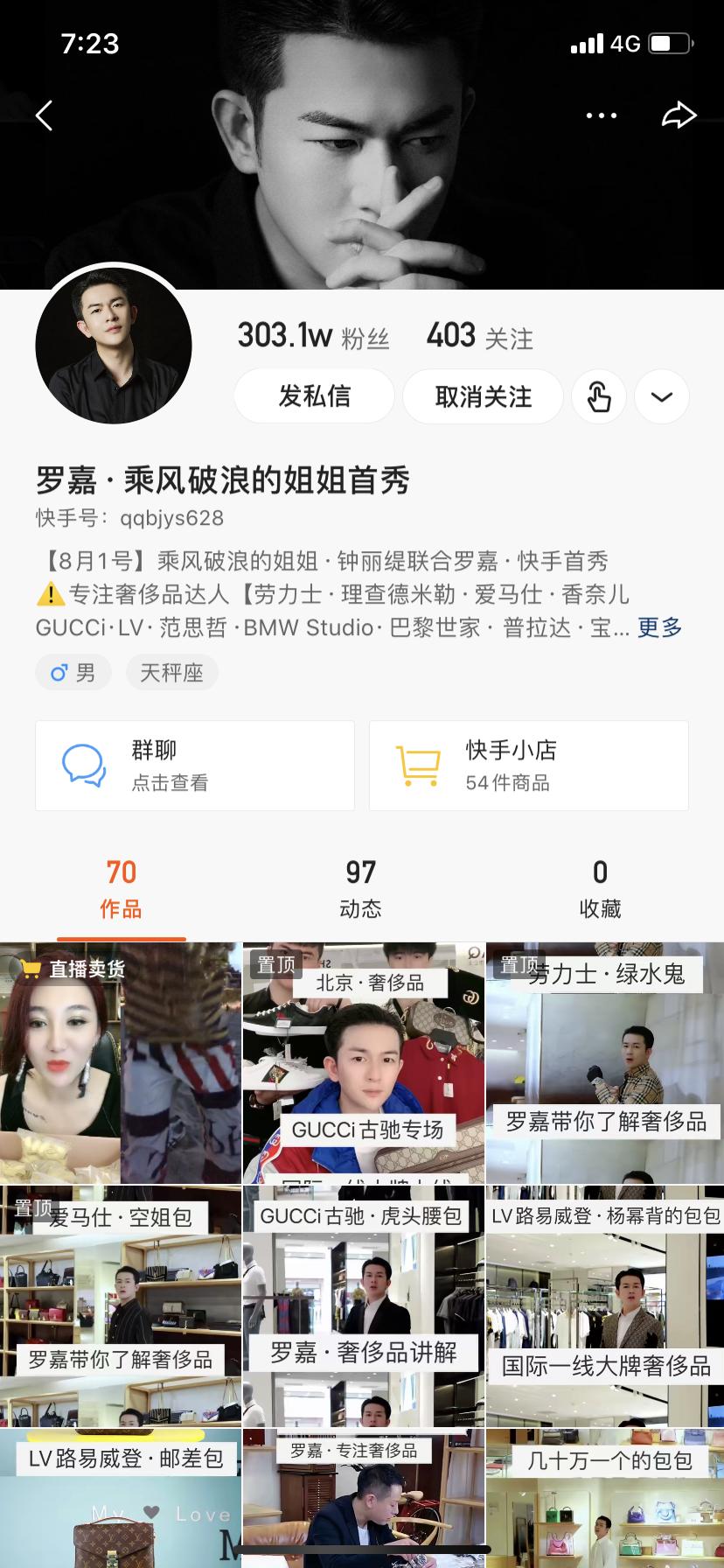 在确定卖什么时,罗嘉也有精准定位,“以男装为主,比较符合我的人设。”但男装领域比较复杂,“没有品牌的服装在产品质量、售后上容易有问题,大品牌相对有保障,无论从质量还是售后。”经过一段时间考察,罗嘉瞄准了奢侈品。