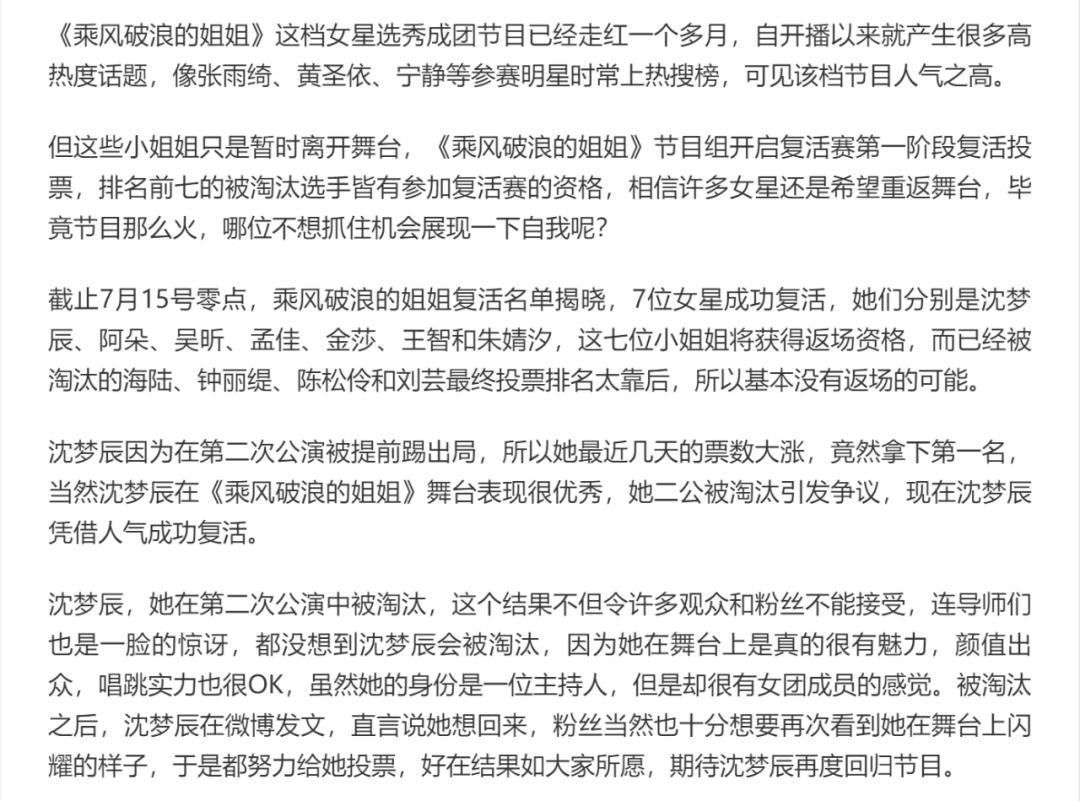 本着好奇心,我又随便百度了一下,试了试几个号称能够“用AI写稿”的平台。我试了关键词“乘风破浪的姐姐”,让AI帮我写稿,结果……