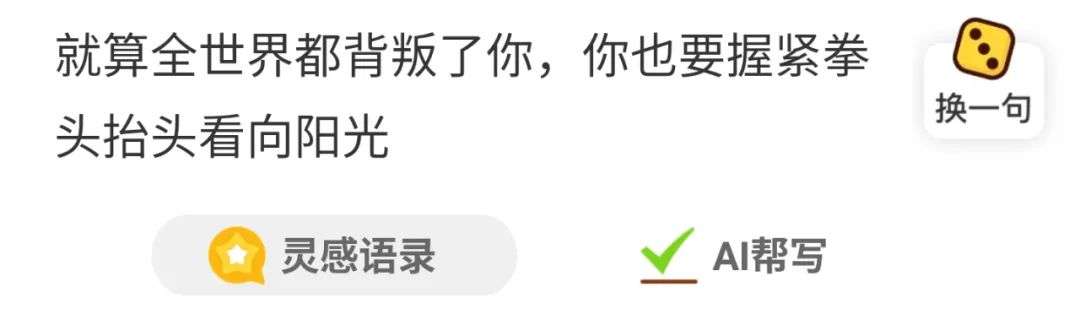 果然,喂鸡汤是“灵感语录”的主要功能。对于狂发九宫格 / 清早能量满满 / 喝杯奶茶也要晒的朋友圈狂人而言,搜狗输入法的AI朋友圈助手,确实能解决你词穷的问题。如果句子你不喜欢,再多试几个就好了。
