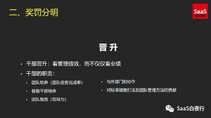 晋升是很多优秀销售代表的工作动力。但要做好引导:销冠未必是最合适的干部,中间的Gap(差距)是管理能力和领导力。当然,销冠是最值得培养的潜在干部。