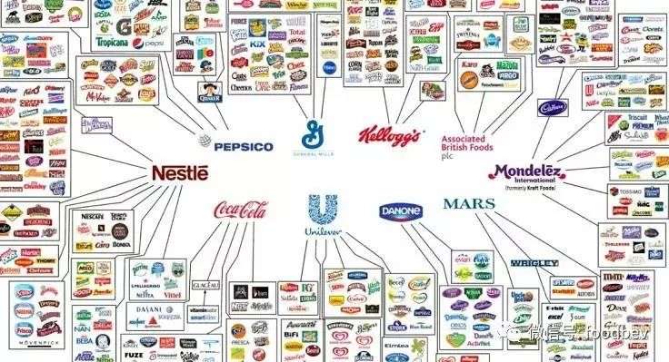 而全球范围内,绝大多数的知名食品品牌,都被这十个集团控制。