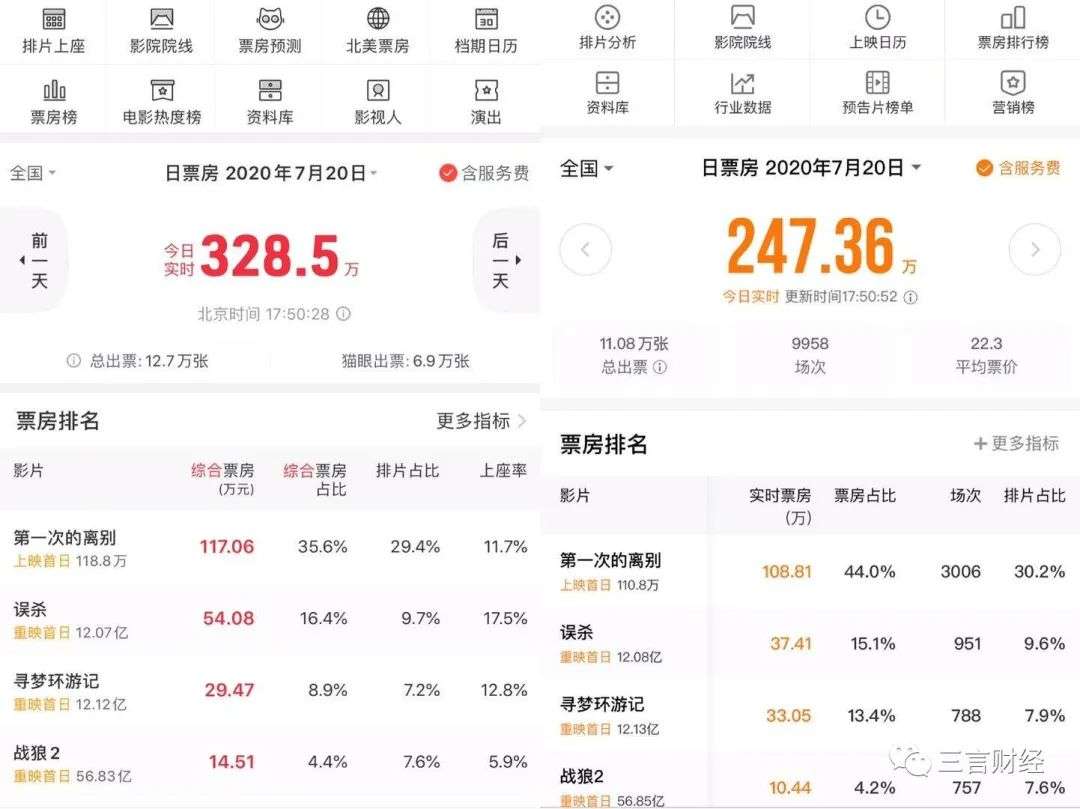 影院复工首日,猫眼和灯塔票房数据差了100万?