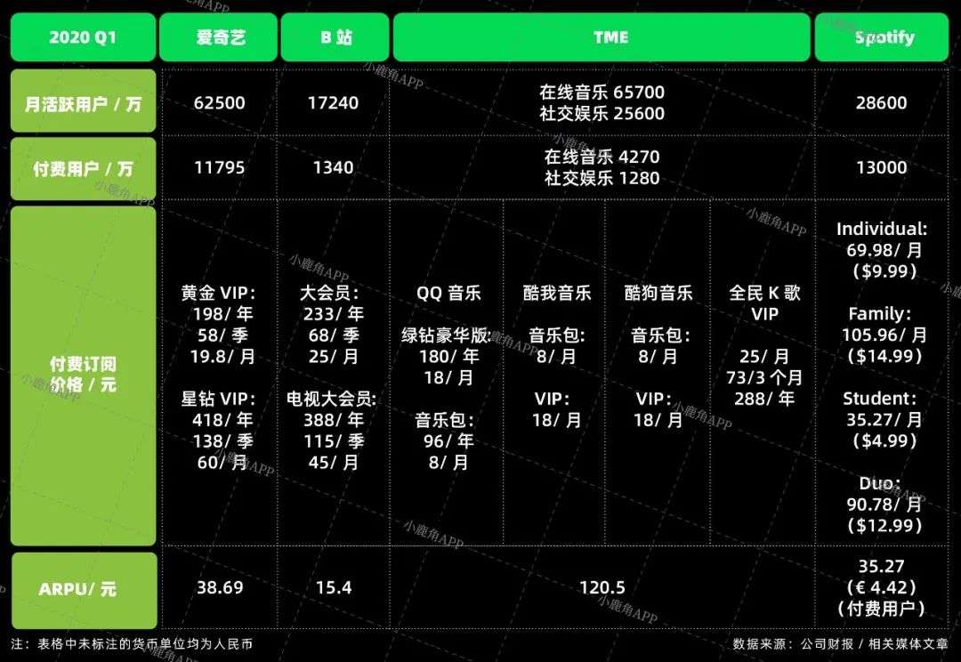 纵向对比:国内音/视频流媒体(以TME和爱奇艺为代表)