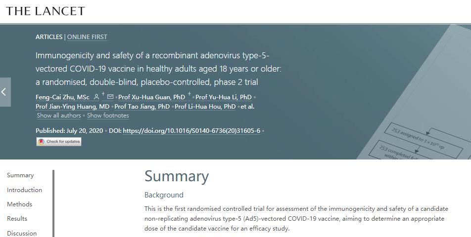 “新冠疫苗研发赛跑”日益激烈,《柳叶刀》再推「康希诺生物与陈薇团队」积极临床数据