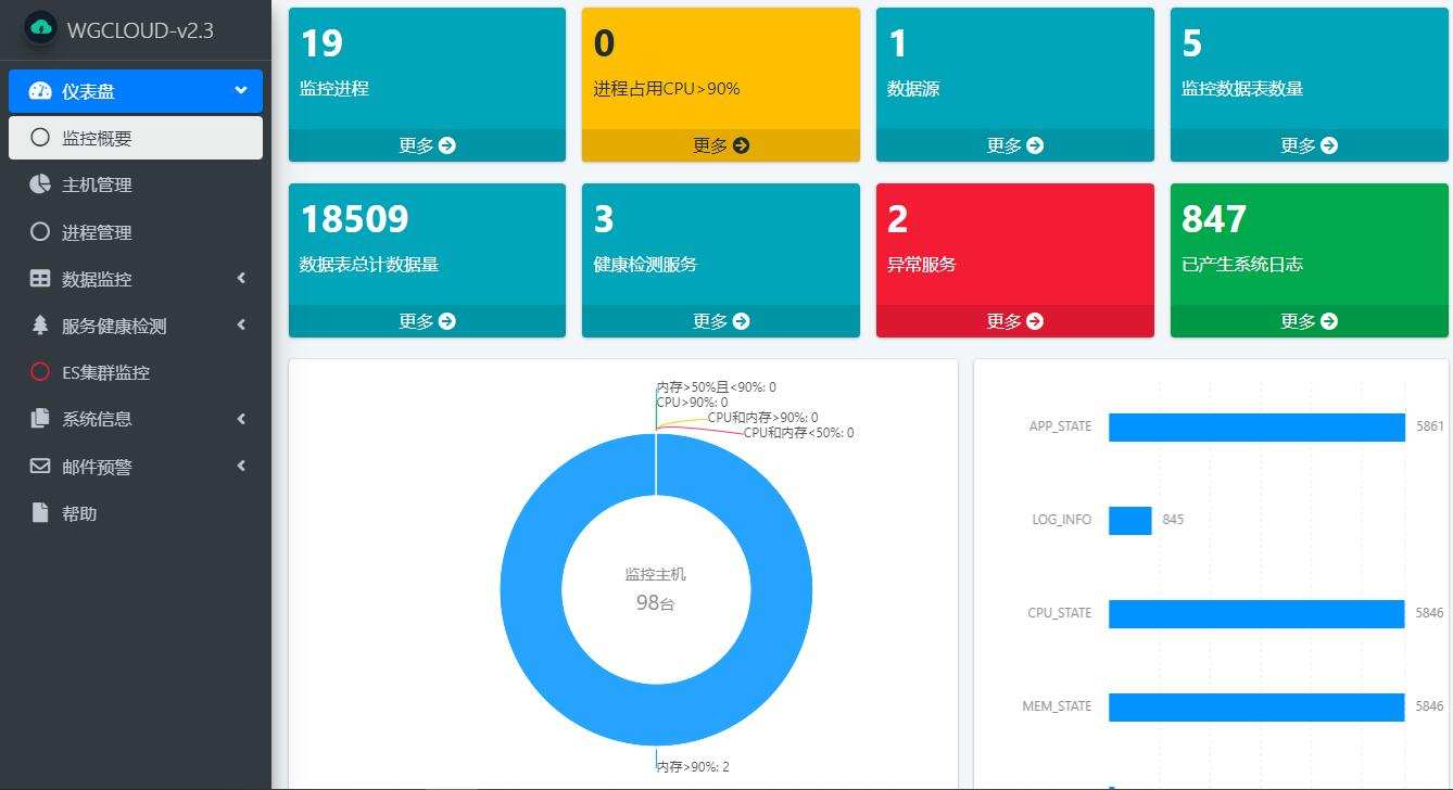 主打数据监控的WGCLOUD监控系统,是微服务架构的分布式监控平台,坚持将用户体验作为第一个切入点。其核心模块包括:服务器性能监控,CPU监控,内存监控,数据监控,服务心跳检测,应用进程管理,磁盘IO监控,系统负载监控,监控告警信息推送,网络流量检测,业务数据监控,服务接口检测等。