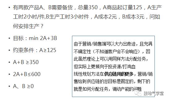 在给定业务限制条件的情况下,经常出现最优化问题。比如给定了各个部门工时成本,求一个最优任务分配。这时候就是工作计划模型。最常见的就是解线性规划,在工作调配的时候用的非常多(如下图)。