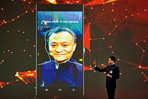 马云演示蚂蚁金服的SmiletoPay 技术。