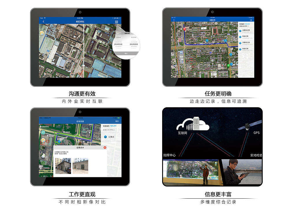 除此之外,航天世景还提供相关行业的解决方案。在土地核查等领域提供了智慧监察巡查系统,在其他领域还可提供高耗能工厂运行状态监测、火灾火情监测、地表形变监测、水体质量监测、网优数据包、机场安全数据包等解决方案。