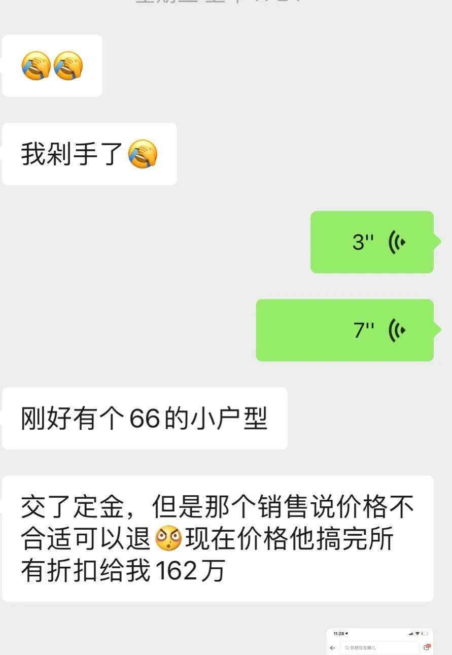 在调研的前一天,一位在黄埔上班朋友发微信给我,她已经下定了知识城一套小两房,总价162万,首付50万不到。