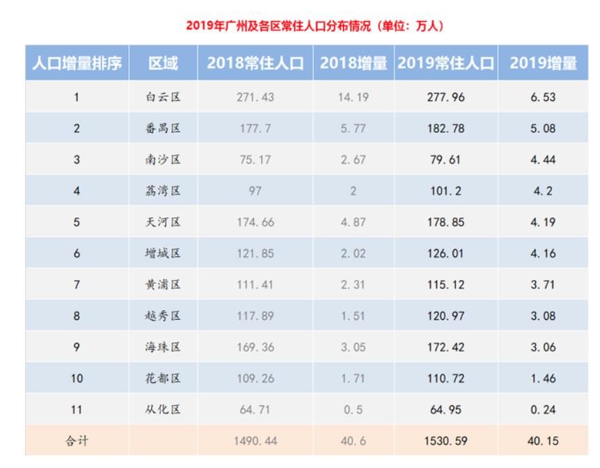 去年常住人口增量虽然可以排到广州第三,但因为本身基数太少了,是广州人口倒数第二的区,所以你会感觉人口还是太少了。