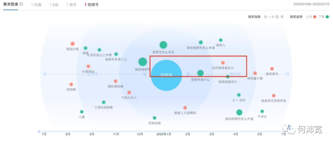 再者,通过百度指数查看关于微信“视频号”的需求图谱,“如何锻炼意志力”等等学习型搜索已经出现。可以说用户端,对视频号的知识型/解答型需求,自视频号推出不到半年,就自然形成了。