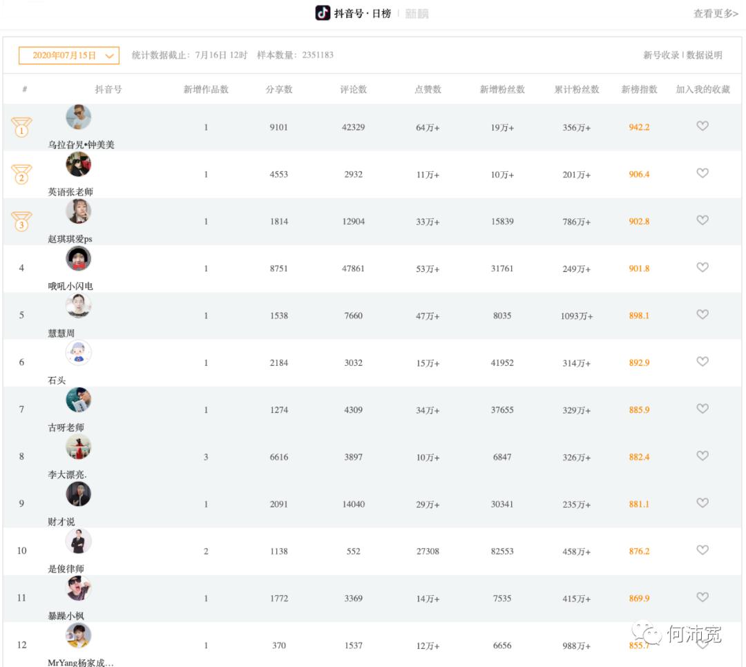 从品类偏好来看,抖音平台2019年知识类排行前五包括:美食制作、语言教育、学科教育、职业教育、知识科普。而最新的抖音短视频数据,排行top10的教育类创作者,主要分布在语言、办公工具、商业科普、法律。