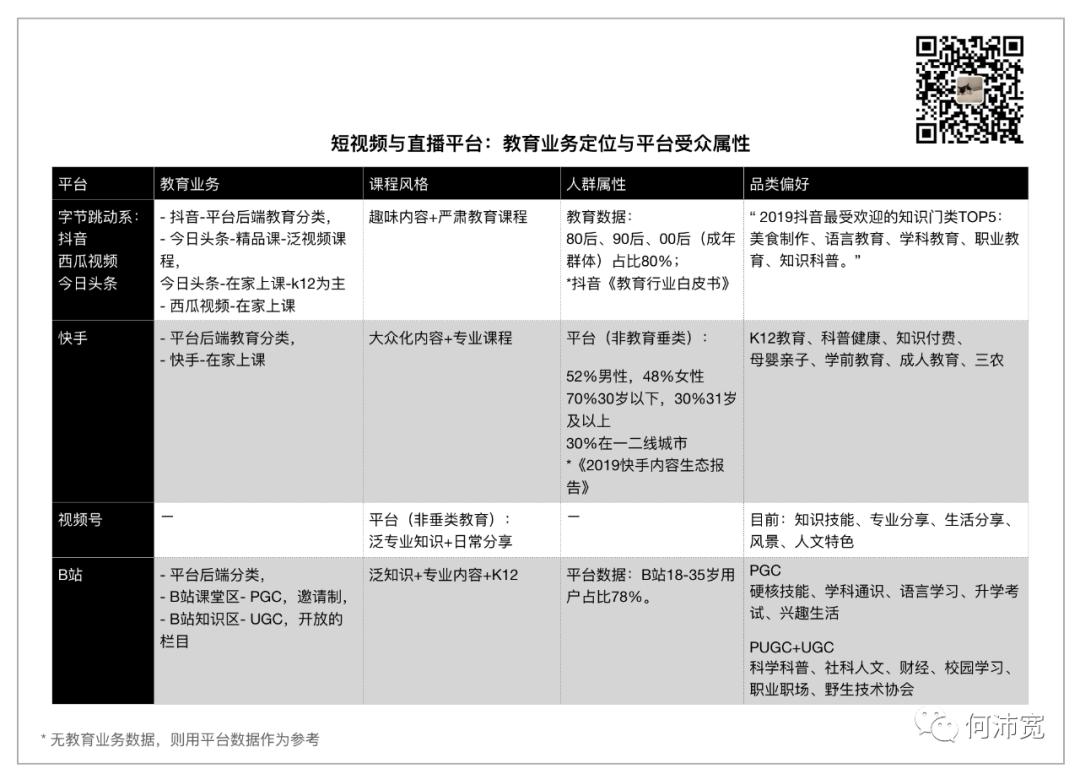 一、四大短视频与直播平台:教育业务定位与受众属性