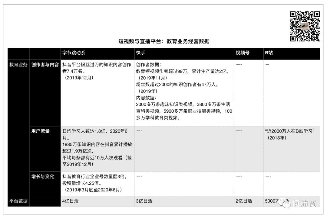 在这里,我们从各个短视频与直播平台,创作者端、用户流量端,来看平台目前在教育业务的经营状况。