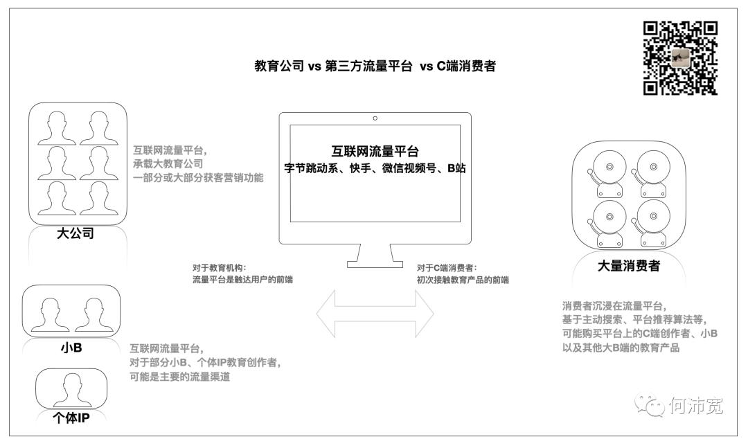 梳理了这么多关于短视频与直播流量巨头,在教育业务上的定位、资源投入与策略。各领域的教育机构、个体IP创作者,可以结合自身的能力、资源优势做进一步决策:是否要投入某个流量平台(平台资源与策略)、如何选择(争取资源扶持、避开竞争)以及经营策略上如何定位(匹配用户属性与偏好)。