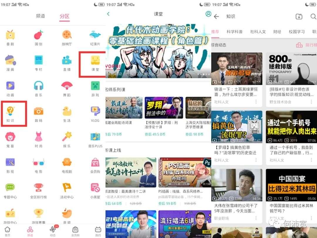 在B站,上文已提及,教育业务以开放的“知识”区、以及“封闭的”课堂区为主。“知识”区,对于教育机构、个体IP而言,是一个相对低门槛的流量池,可以作为一个引流的资源池。“课堂”区目前看来是PGC形式,生产专业、付费的知识视频,暂时还是封闭的形态,对大多数教育IP和机构参与者并没有直接的支持资源。