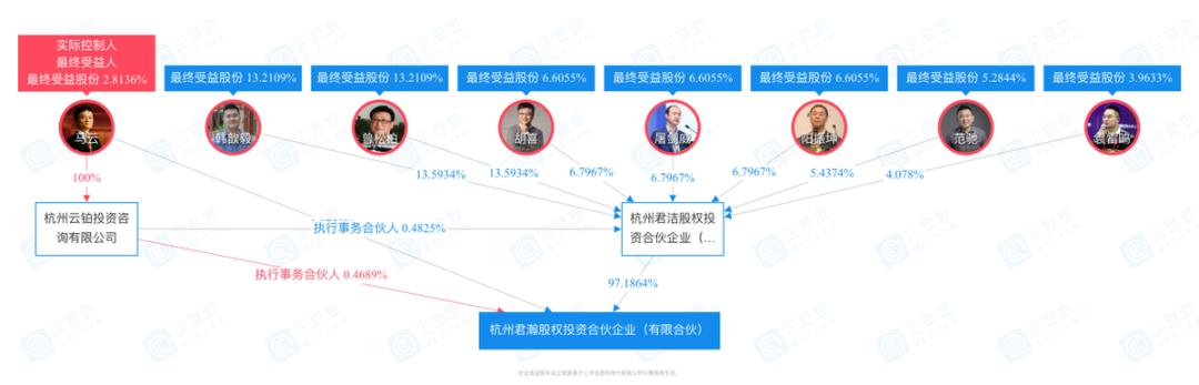 如果说君瀚是以马为核心的蚂蚁高管、员工、关联方组成,那么君澳的背后则是以马云为核心的阿里合伙成员组成,他们通过杭州君济实现对君澳的控股。