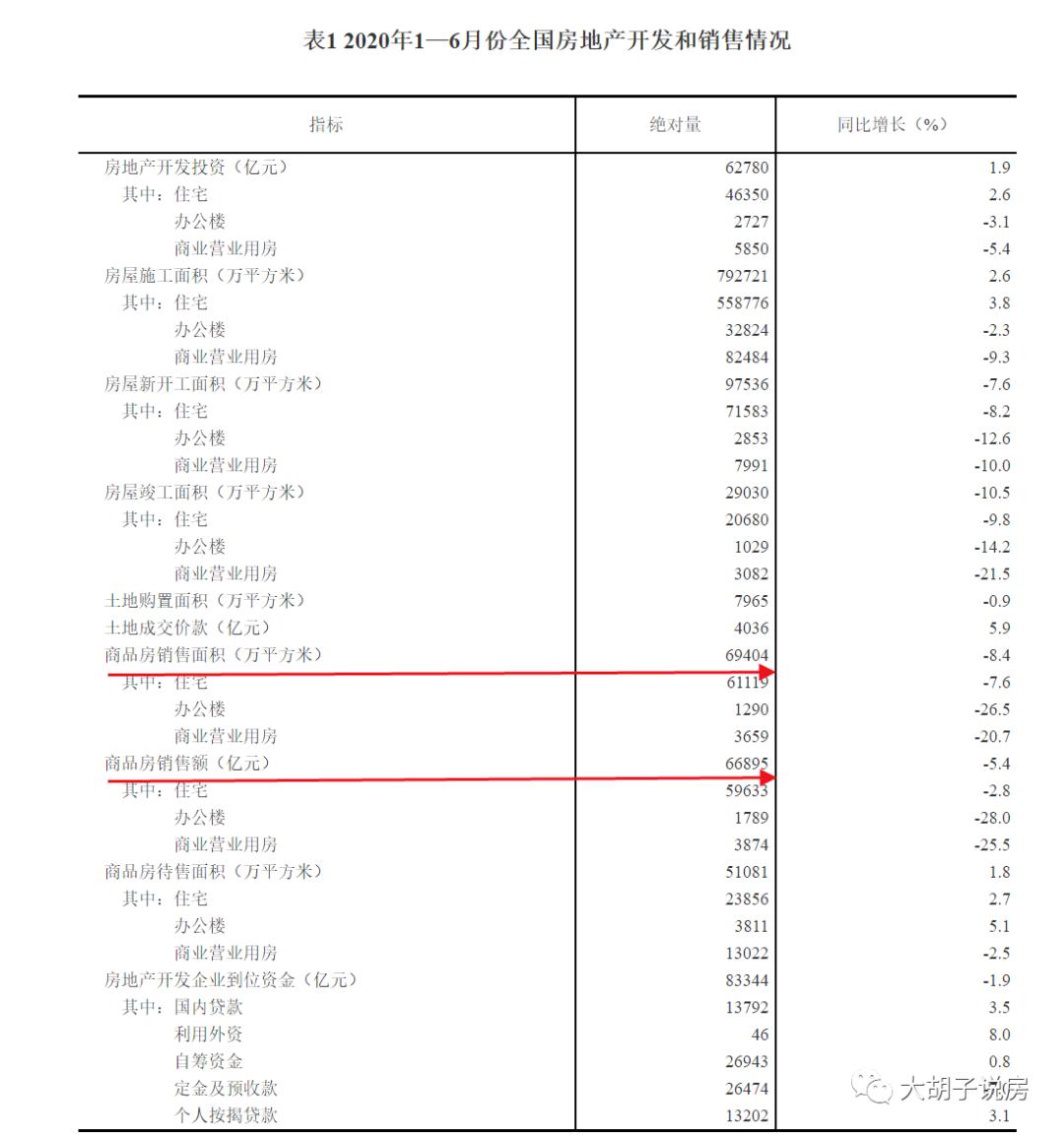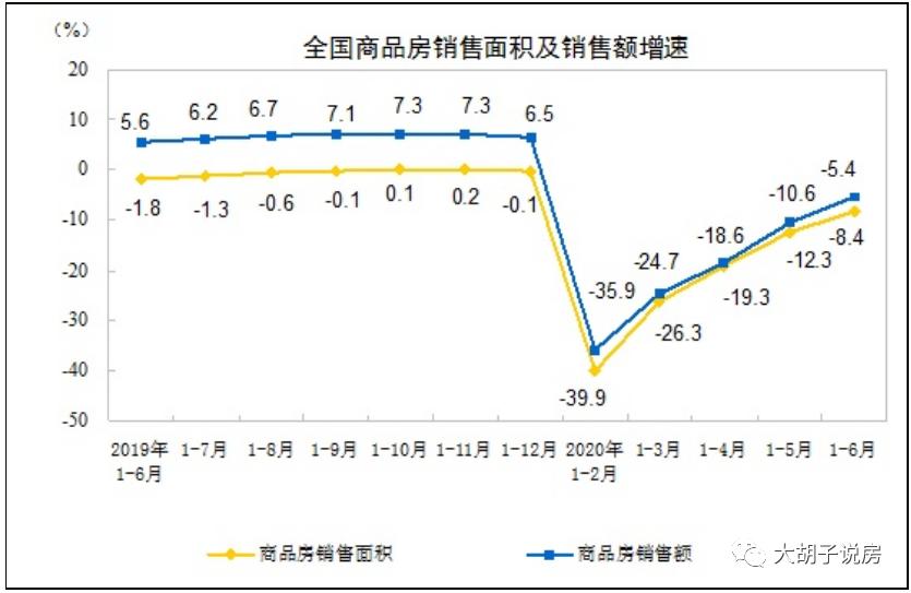 1—6月份,商品房销售面积69404万平方米,同比下降8.4%,降幅比1—5月份收窄3.9个百分点;商品房销售额66895亿元,同比下降5.4%,降幅比1—5月份收窄5.2个百分点。