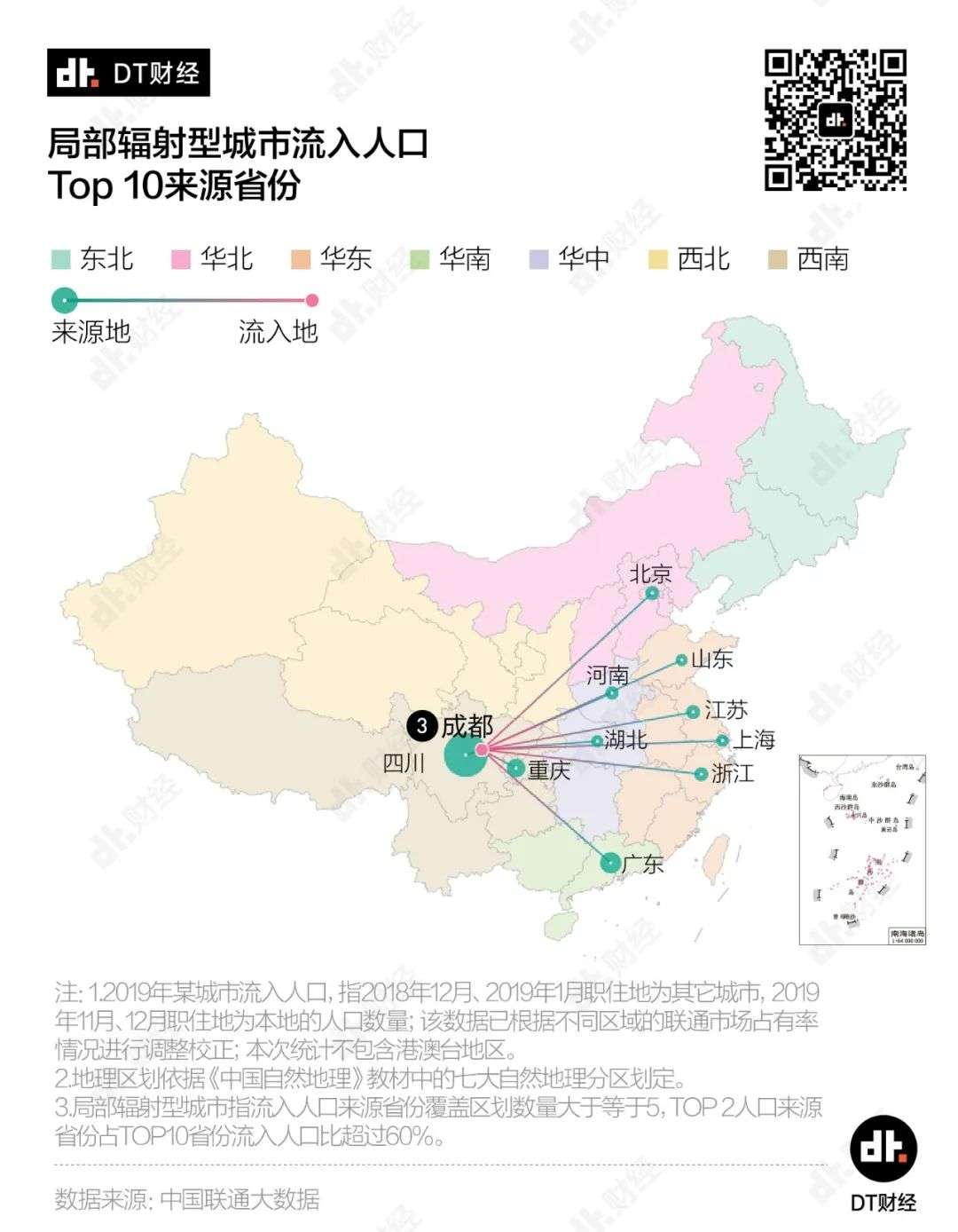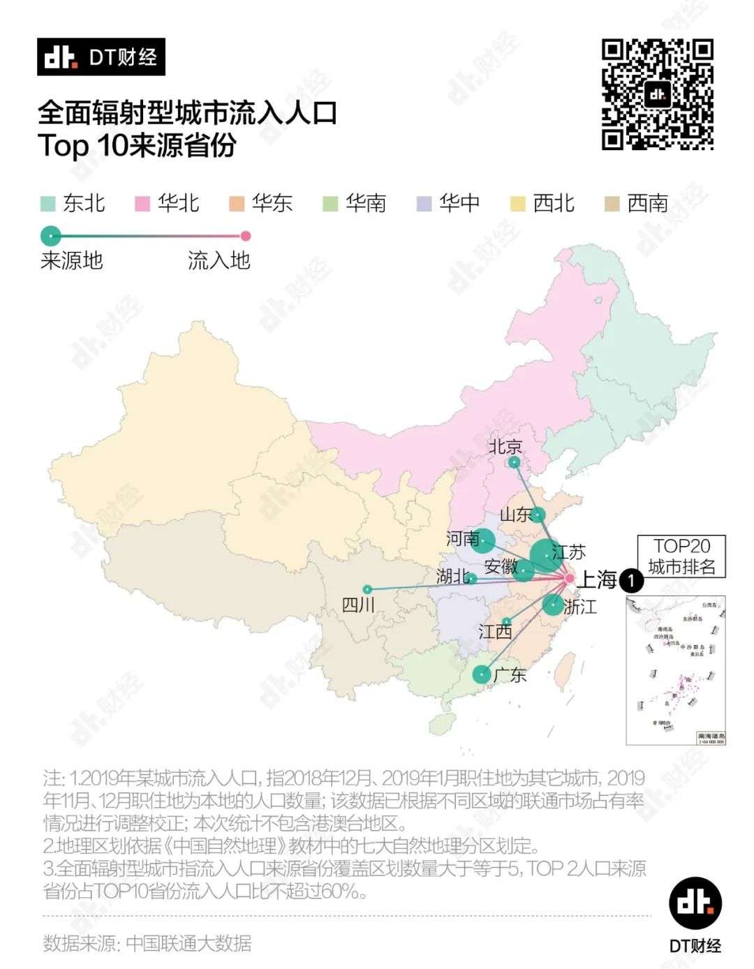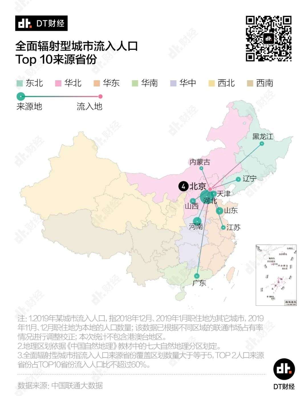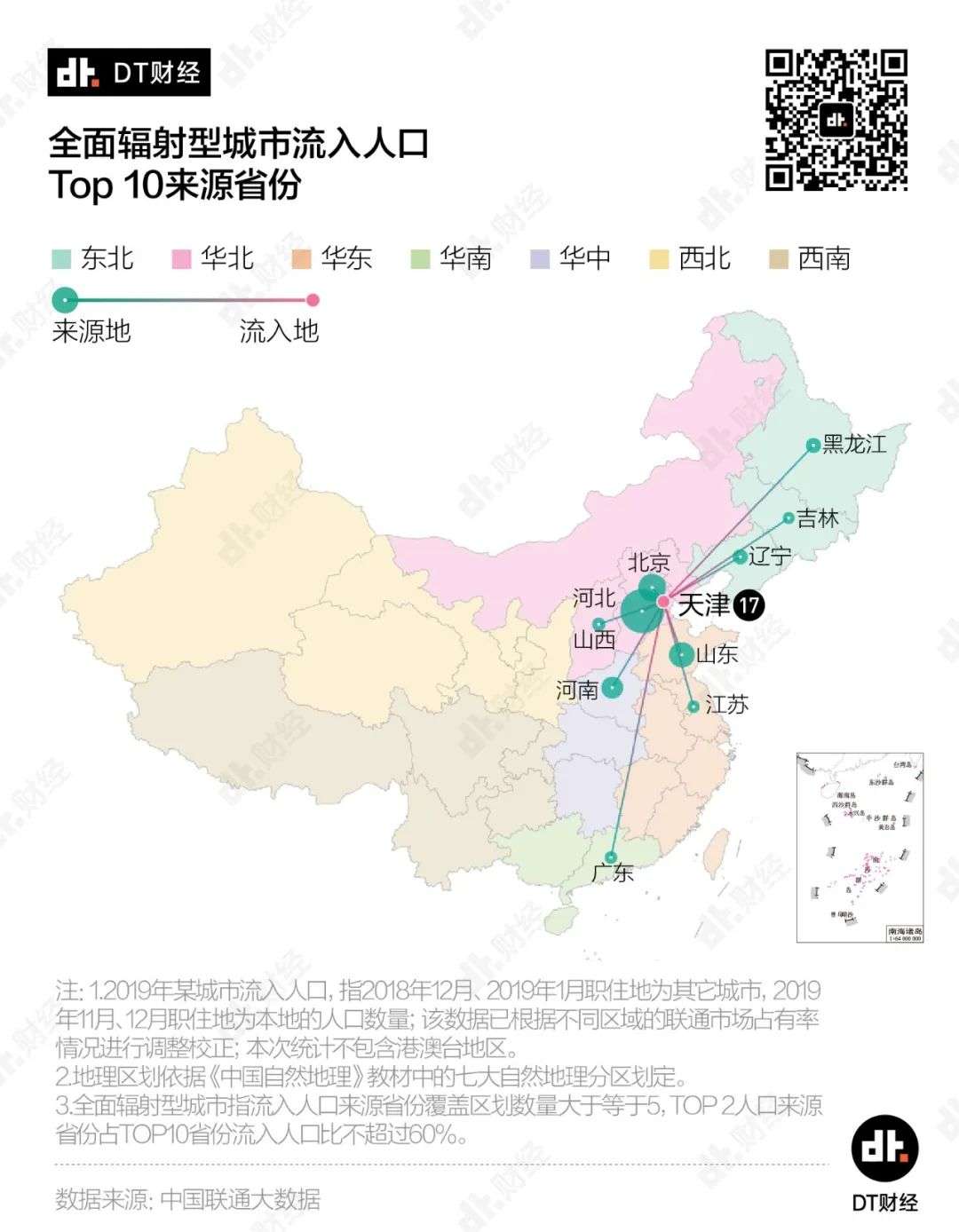 举个栗子,中国一共有七大自然地理分区划定,包括东北、华北、华东等,如果某城市的人口热门来源地覆盖了所有七个区划,那这个辐射力就强无敌了。