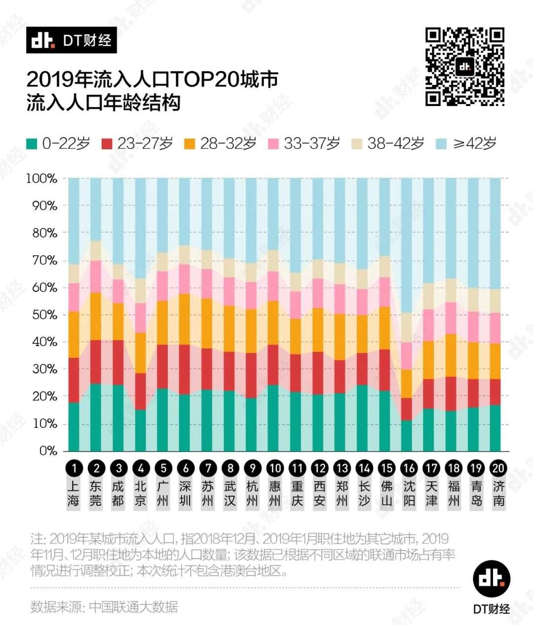 东莞、深圳、惠州、佛山等珠三角(大湾区)城市的流入人口中,42岁以下的比例相对更高,尤其吸引22-37岁的中坚力量。随着大湾区引起全国的关注,奋斗之都的称号或许不仅适用于深圳,而是整个大湾区的特写。