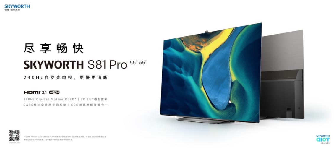 创维电视董事长兼总裁王志国在发布会上介绍说,有 Crystal Motion OLED(CMO)功能加持,S81 Pro 能够实现类似 240Hz 刷新率的效果。