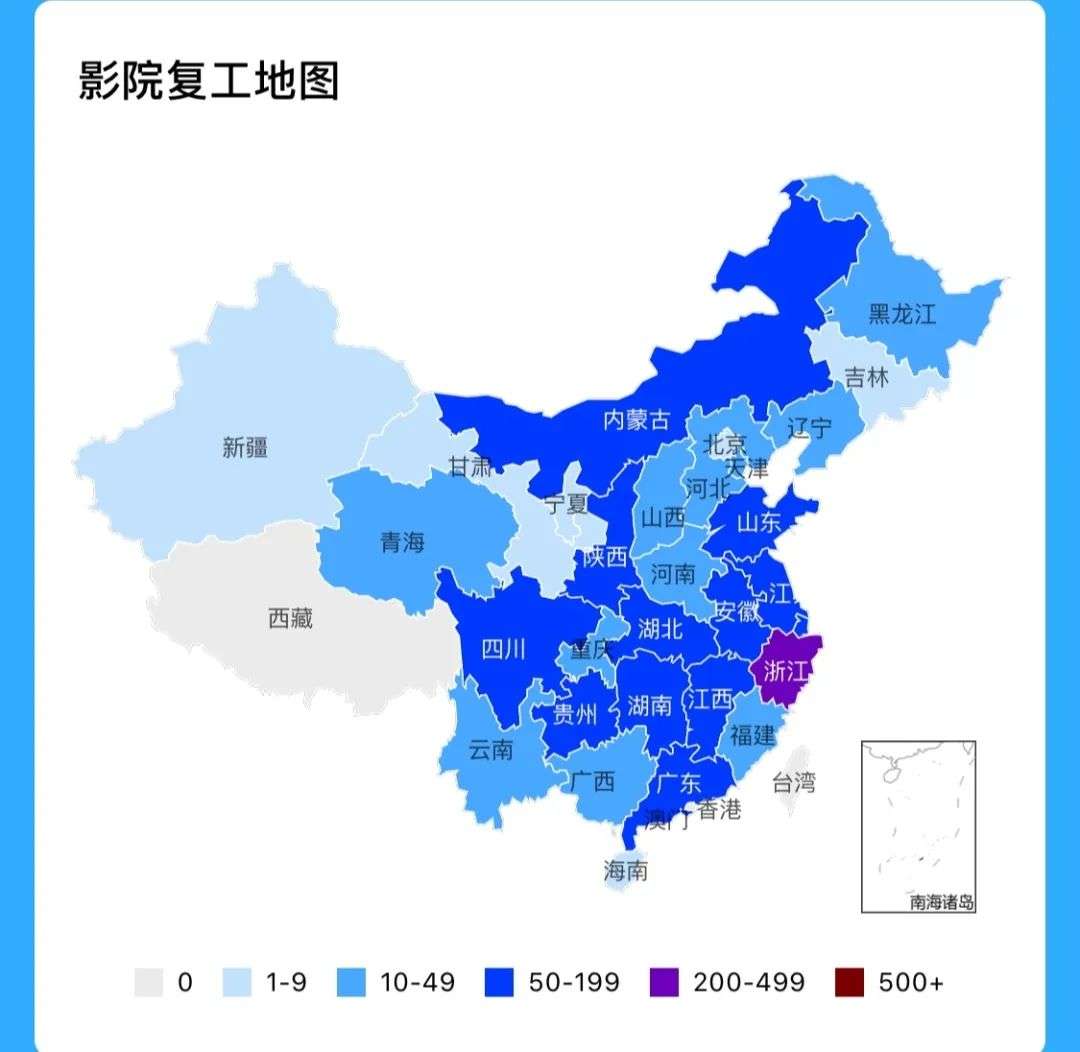 “目前浙江的影院复工率达到了26.7%。”瑶朶告诉记者,这个还未过半的数字,已经在全国能够排名第二了。而全国的平均复工率来看,一线城市在16%左右,二三线城市只有10%。