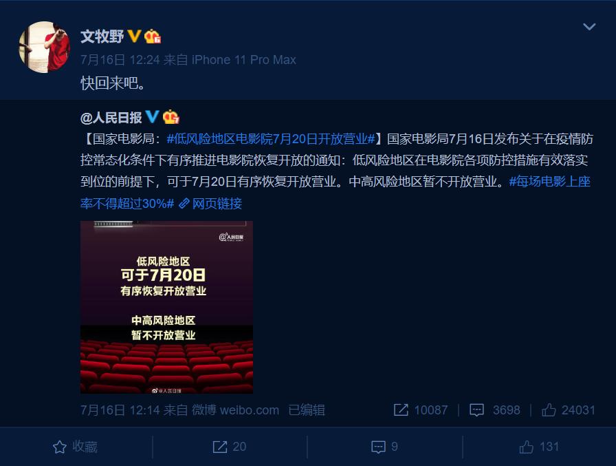 7月16日电影行业从业者们的朋友圈炸了。小郑的第一反应就是,回去!