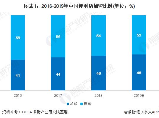 根据前瞻产业研究院报告显示,2016-2018年中国便利店加盟比例持续上升,2018年,中国便利店加盟比例为46%,同比上升2个百分点,预测2019年加盟便利店占比将达到48%左右。