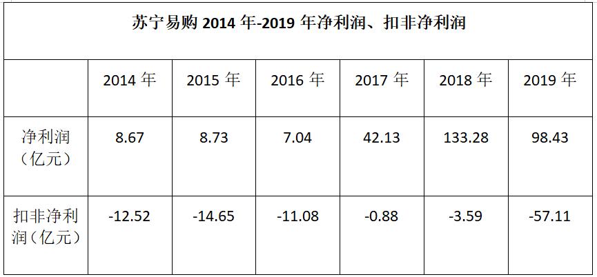 自2014年以来,苏宁扣非净利润持续为负,意味着苏宁的主营业务早已不再赚钱。而在收购万达百货、家乐福中国后,苏宁2019年的扣非净利润亏损数据达到新高,-57.11亿元的业绩让外界对苏宁产生了信任危机,股市表现不尽人意。