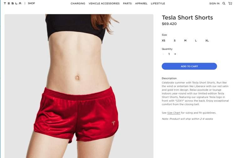 7月6日,马斯克在个人Twitter上挂出了这款限量版短裤的链接,宣传语这样描述:“穿着我们红缎材质金边装饰的短裤像风一样奔跑或像列勃拉斯(钢琴家)一样演奏,享受收市钟声带来的格外舒适感。”