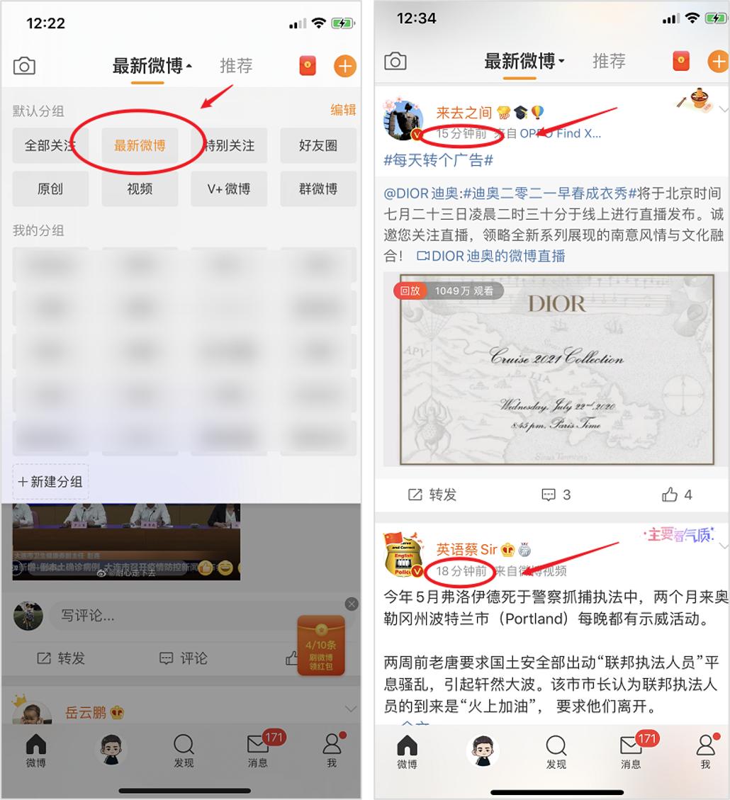 后来微博没办法,新加了“最新微博”的选项,用户选择了之后基本上就能恢复正常了。