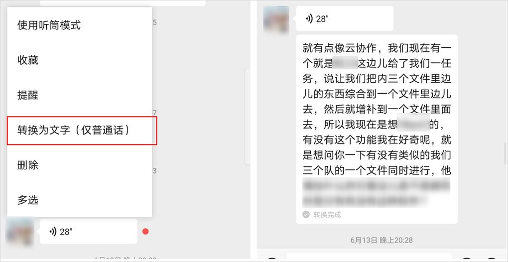 如果发消息的人没有转文字,接收消息的人也可以自己转文字。