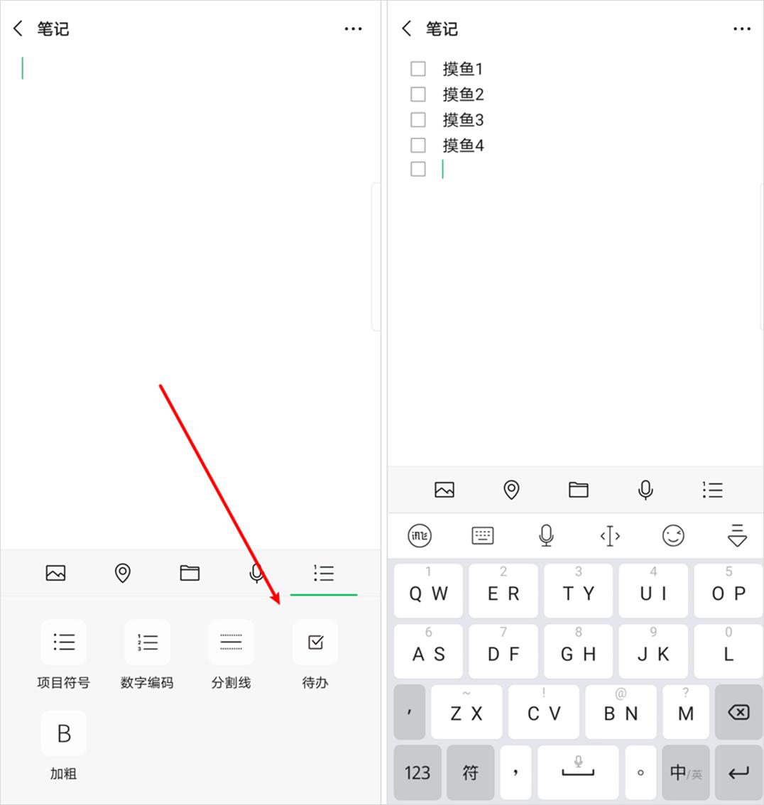 微信的笔记功能非常强大,可以插入图片、语音、位置等内容,右下角的「待办」功能还能用来写 To Do List,我每天上班之前都会在微信笔记里先写好自己的 To Do List。