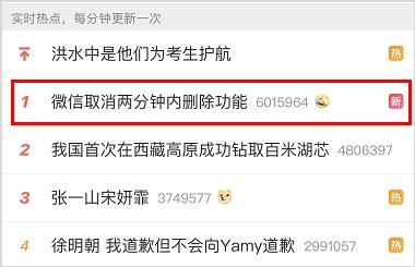 昨天,微信改版又上热搜了,还是第一,这次是因为取消了 2 分钟内的删除功能: